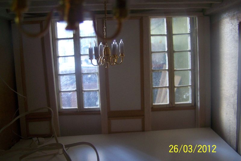 Au rez de chaussée les lustres ont été mis et je vais maintenant mettre