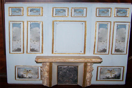 reproduites en plâtre. La dorure du pourtour de la cheminée est du